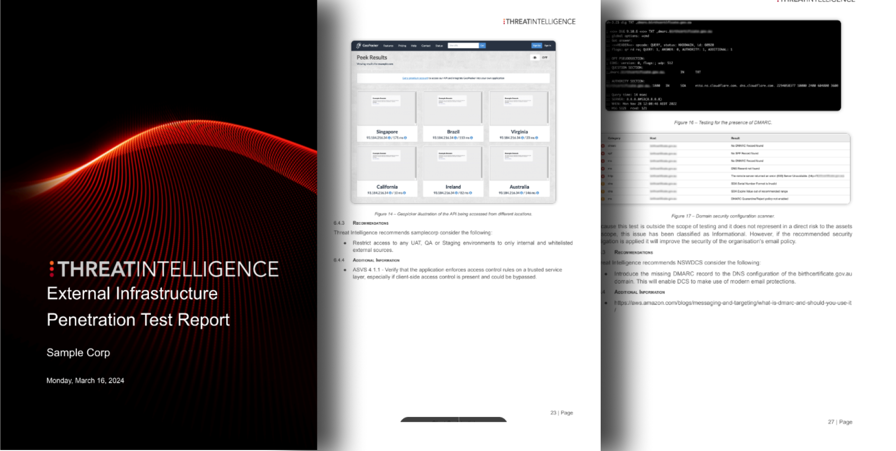 This sample report provides an in-depth analysis of an External Infrastructure Penetration Test conducted by Threat Intelligence. It outlines the methods, tools, and processes used to assess and identify vulnerabilities in a client’s external-facing IT infrastructure. The goal is to simulate real-world attacks and evaluate the effectiveness of current security measures.